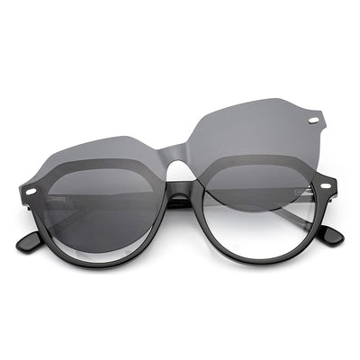 With its detachable clip-on shield, GeoClip effortlessly transforms from clear eyeglasses to stylish sunglasses in seconds. The design ensures seamless adaptability, making it equally practical for indoor tasks and outdoor activities while retaining its sharp and confident look.