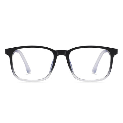 The SnapGlow Fade frame is designed with a modern square silhouette and a stylish gradient fade effect. Built from lightweight TR material, its full-rim design ensures both durability and comfort for long wear. The magnetic clip-on lenses switch instantly from eyeglasses to sunglasses, offering seamless convenience indoors and outdoors.
